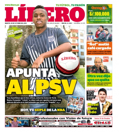 Por su parte, Líbero habla de la posibilidad de que el jugador Yordy Reyna emigre al fútbol holandés, específicamente al prestigioso club PSV Eindhoven que anteriormente vio brillar en sus filas a Jefferson Farfán, actual artillero estrella del alemán Schalke 04.