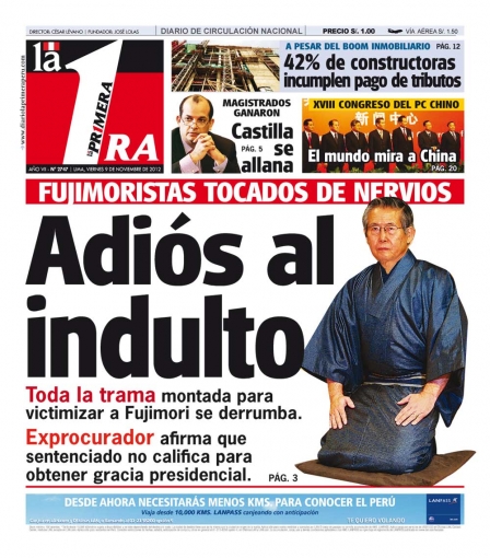 Cerramos este recorrido con La Primera, que coloca en su rostro las palabras del exprocurador Ronald Gamarra, quien calcula que tras la exhibición de las condiciones carcelarias en que Alberto Fujimori cumple su condena, el Ministerio de Justicia determinaría que el exmandatario no reúne los requisitos necesarios para obtener el indulto.