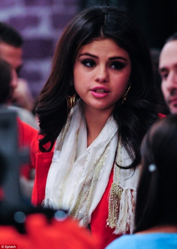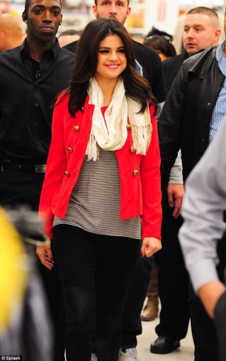La joven cantante parecía impulsada por la multitud de fans que se habían reunido a su encuentro y tuvo que poner una cara valiente ya que los informes de su ruptura con su novio Justin Bieber habían llegado a todo el mundo.