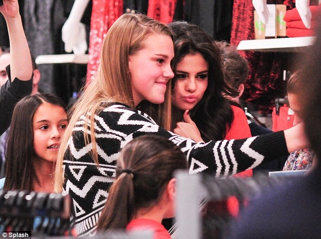 Selena Gómez se veía lejos de angustia durante una comparecencia en el almacén de descuento de la cadena K-mart en White Plains, Nueva York ayer domingo.