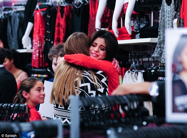 En un momento Selena estaba tan emocionado con la felicidad que le dio una seguidora al abrazarla.