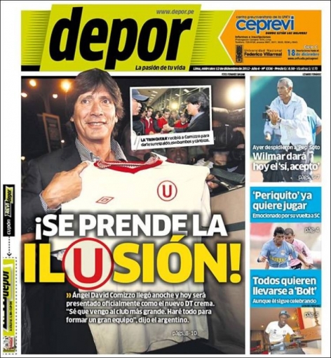 Por otro lado, Depor trae los temas relacionados a Universitario de Deportes. El argentino Ángel Comizzo arribó anoche a Lima para hacerse cargo del elenco, sustituyendo así a Nolberto Solano.
