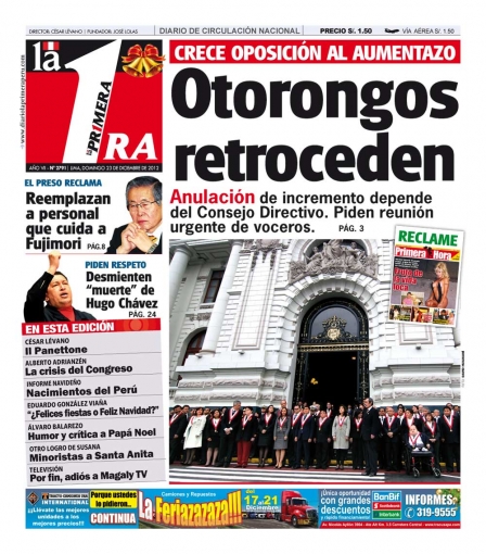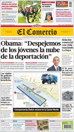 Finalizamos este recorrido con El Comercio, que resalta las palabras del presidente de Estados Unidos, Barack Obama, sobre la deportación de niños y las posibilidades de Latinoamérica de convertirse en un motor de gran importancia para la economía del mundo; mientras que La Primera abarca el polémico aumento de sueldo de los congresistas.