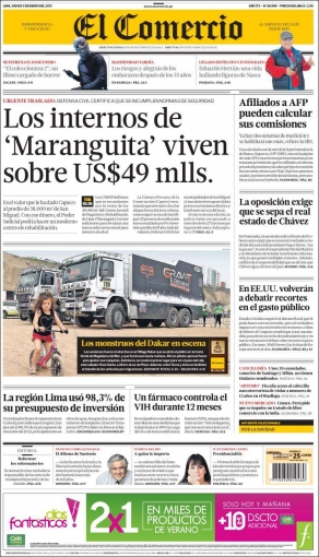 Finalizamos este repaso con El Comercio, que presenta un informe respecto al Centro Juvenil de Diagnóstico y Rehabilitación de Lima (CJDRL), más conocido como “Maranguita”, cuya sede está valorizada en unos 49 millones de dólares, de acuerdo a estimaciones de la Cámara Peruana de la Construcción (Capeco); mientras que La Primera cede interés a la fuga de internos del centro de rehabilitación "Maranguita", entre los cuales se encuentra el joven sicario "Gringasho".