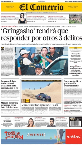 Entre los temas más destacados por la prensa escrita peruana para hoy lunes 7 de enero, aparece la recaptura del sicario juvenil de iniciales AM.P.G más conocido como “Gringasho”, tras una balacera en las afueras de la vivienda donde se escondía, ubicada en el distrito limeño de Santa Anita.