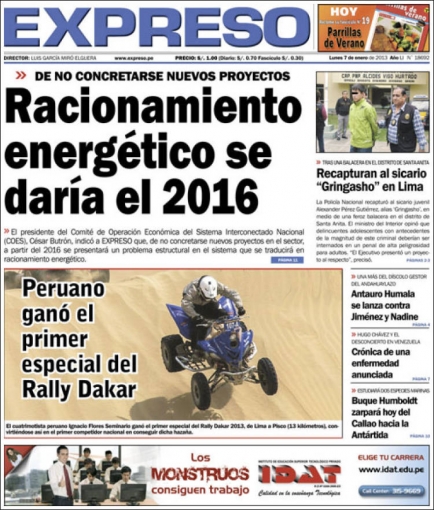 Los temas energéticos llegan con Expreso. De no ejecutarse nuevos proyectos energéticos lo más pronto posible, desde el 2016 se ingresaría a un racionamiento energético producto de un problema estructural en el sistema, de acuerdo al titular del Comité de Operación Económica del Sistema Interconectado Nacional (COES), César Butrón.
