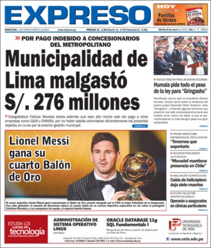 Bajo esa misma línea se ubica Expreso. Fabiola Morales, excongresista y mano derecha del exburgomaestre Luis Castañeda Lossio, aseguró que el actual régimen de la Municipalidad de Lima ha perjudicado a la ciudad con un supuesto desembolso irregular a los operadores del servicio El Metropolitano, que asciende a 276 millones de nuevos soles.