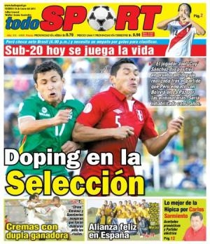 Este caso es ampliado por Todo Sport. El presidente de la Federación Peruana de Fútbol (FPF), Manuel Burga, anunció que el jugador de la selección peruana, Joel Sánchez, dio positivo en la prueba antidopaje que se realizó tras el último partido con Bolivia, por las Eliminatorias Brasil 2014.
