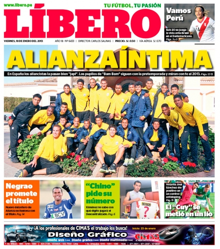 Por otro lado, la gaceta Líbero dedica su rostro a la selección peruana de fútbol, que juega el Torneo de la categoría en la Argentina. Los pupilos del gaucho Daniel Ahmed tienen hoy su prueba de fuego ante Brasil y, de quedarse con los tres puntos, clasificará directamente a la siguiente etapa del certamen.