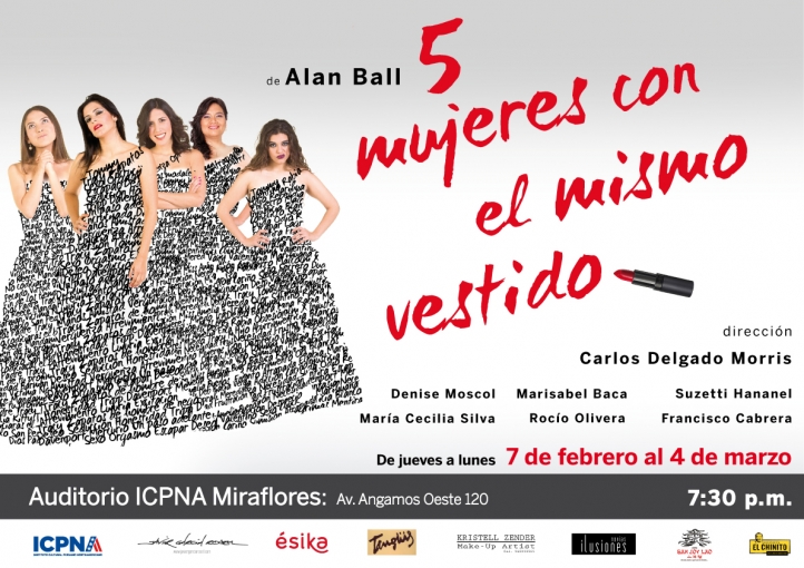 Es la obra finalista del XI Festival de Teatro Peruano Norteamericano, escrita por el ganador del Oscar en la categoría de mejor guión original, Alan Ball (American Beauty) y dirigida por Carlos Delgado Morris. La obra transcurre durante la recepción de una boda ostentosa en Knoxville, Tennessee. Cinco damas de honor se encuentran en un dormitorio del segundo piso, cada una con sus propias razones para evitar el gran evento que se desarrolla en el primero. A medida que la noche avanza, descubren un vínculo común en esta perversa, divertida, irreverente y conmovedora celebración del espíritu femenino. Auditorio ICPNA Miraflores. De jueves a lunes hasta el 4 de marzo. 7:30 p. m. Boletería.