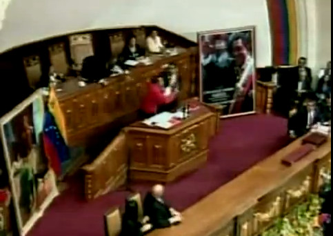 Cuando todo marchaba sobre ruedas en la ceremonia de investidura del flamante presidente de la República Bolivariana de Venezuela, un espontaneo irrumpió repentinamente en el estrado desde el que Nicolás maduro se dirigía a los diputados de la Asamblea Nacional, los invitados internacionales y el pueblo venezolano.