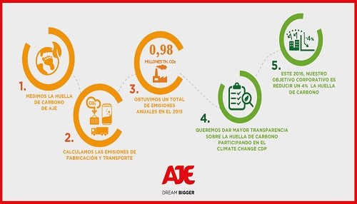 El Grupo AJE presenta su primer Informe de Huella de Carbono con el firme propósito de medir su actividad para elaborar una estrategia de sostenibilidad acorde al objetivo planteado por la COP21, la Cumbre del Clima de París, de mantener el calentamiento global por debajo del límite de los 2ºC. De esta manera, AJE, con más de 28 años de experiencia y presencia en 24 países, da un paso más para reforzar su compromiso e implicación en la lucha contra el cambio climático y la preservación del ecosistema.