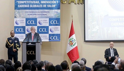 El presidente de la República, Pedro Pablo Kuczynski, sostuvo que su gobierno promoverá el desarrollo económico con la formalización y participación de los pequeños y medianos empresarios, a la vez eliminará las trabas burocráticas para promover el crecimiento económico del país; así lo dio a conocer durante su discurso en la clausura de la XI Cumbre Internacional de Comercio Exterior, organizada por la Cámara de Comercio de Lima.