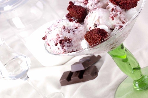 “Este delicioso helado está elaborado a base de fior di panna y bizcochuelo de cacao rojo emborrachado de pisco. El representativo color rojo está presente en los bizcochuelos de este riquísimo postre es que estoy segura nadie podrá resistirse a probarlo” indica la maestra heladera del 4D.