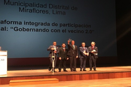 La Municipalidad de Miraflores obtuvo tres premios ‘Buenas Prácticas en Gestión Pública 2017’ por sus iniciativas enfocadas en seguridad ciudadana y por su plataforma de atención al vecino. El reconocimiento fue otorgado por la Asociación Ciudadanos al Día (CAD) en una ceremonia realizada en el Gran Teatro Nacional de Lima.