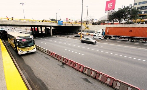 Así, se colocaron barreras viales tipo new jerseys en los paraderos ubicados en los puentes Benavides y Primavera, lo que permitirá que los buses de transporte público ingresen por el carril derecho para el embarque y desembarque de pasajeros.