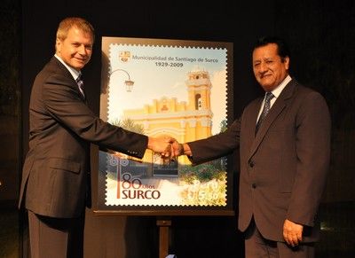 Por su parte, Rojas Aspilcueta, destacó el hecho que por primera vez se emite un sello postal a un distrito limeño. "Con este sello postal buscamos reforzar la imagen de Santiago de Surco como un distrito que promueve el desarrollo y crecimiento de la comunidad en forma dinámica, activa y representativa".