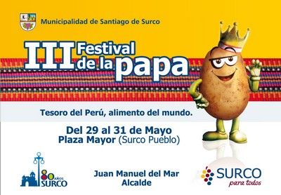 La Municipalidad de Santiago de Surco en coordinación con la Municipalidad de Huasahuasi, desarrollarán desde este viernes 29, el III Festival de la Papa Surco 2009: "Tesoro del Perú, alimento del mundo".
