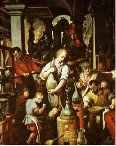 Empedocles, introduce el concepto de los cuatro elementos que fue desarrollado por Aristóteles, quien dijo que ¨el universo está formado por cuatro elementos, tierra, agua, aire y fuego¨ , a partir del cual se desarrollaron los conceptos místicos de este enunciado.Posteriormente, el mundo islámico fue el crisol para la alquimia, Al Razi aportó descubrimientos como la destilación y el alambique, el alcohol, los ácidos muriático, sulfúrico y nítrico, la sosa y la potasa. El descubrimiento del Agua Regia, para disolver el metal más noble, avivó la imaginación para transmutar metales viles en oro.