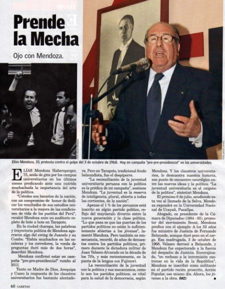 Un interesante artículo sobre la éxitosa incursión de Elías Mendoza en las elecciones internas para elegir candidato a la presidencia de la república para el 2011 en Acción Popular.
