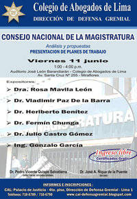 Expositores:- Dra. Rosa Mavila León- Dr. Vladimir Paz De la Barra- Dr. Heriberto Benítez- Dr. Fermín Chunga- Dr. Julio Castro Gómez- Ing. Gonzalo GarcíaIngreso libreSe entregará Certificados