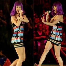 Solo tiene 25 años, pero una personalidad que junto a su talento musical le han permitido ganarse un lugar en el corazón de sus fans. La interprete de "I Kissed a girl" llamó la atención con un traje de goma, en cuyo diseño se mostraban una piezas de lego. Un atuendo muy original.