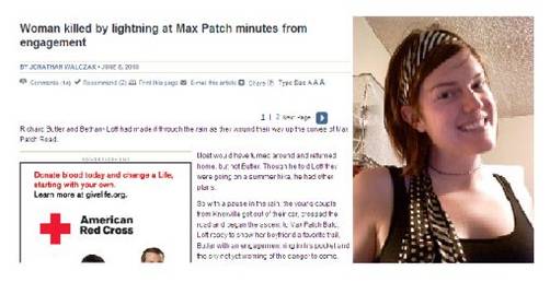 Sin embargo, en el preciso momento en que le iba a preguntar si deseaba casarse con él, un rayo cayó y mató a su novia. Según Butler, las últimas palabras de su novia fueron: "Dios mío, qué lindo es eso".