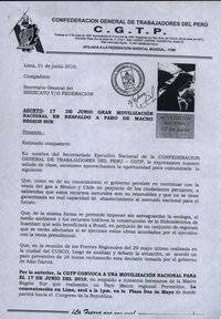 Movilización Nacional de la CGTP en apoyo a la Macro Región Sur este jueves 17 de junio
