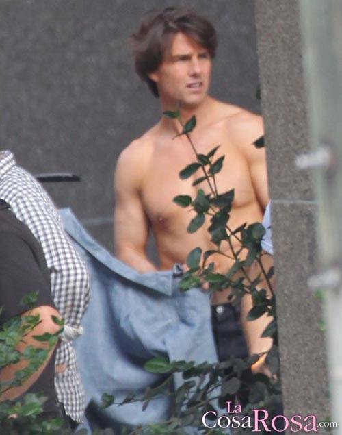 Cruise lucía pecho tonificado y musculoso -fruto de muchas horas de gimnasio y ejercicio duro-, mientras rodaba un anuncio para el canal de deportes estadounidense ESPN en Los Ángeles. El actor también daba instrucciones detrás de la cámara al resto del equipo y trabajaba con Cameron Cruz en esta publicidad.