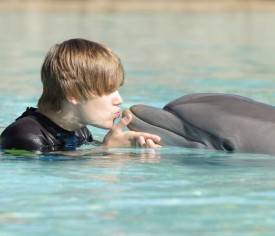 El joven cantante aprovechó que estaba por allí para pasar una jornada junto a un grupo de delfines con los que nadó y se divirtió mucho.