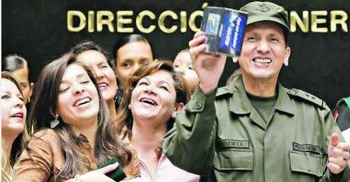 El general de la policía Luis Mendieta a su llegada a la base militar en BogotáFoto: Clarin.com