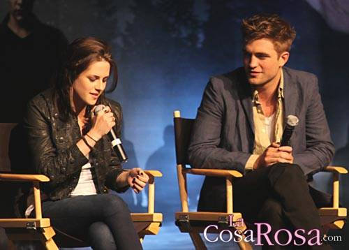 Sabiendo que Breaking Dawn se dividirá en dos partes, lo único que no le gustaba a Rob es que el rodaje será más largo. “La última vez cuando nosotros rodábamos Eclipse en Vancouver, la población entera de paparazzi de los Los Angeles se trasladó y acampó fuera del hotel. Así que si es en Vancouver, acabaré volviéndome loco y saltando por el balcón”. En la foto podéis ver a Rob y a Kristen en un evento de promoción de Eclipse el sábado doce de junio.Fuente: Lacosarosa