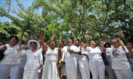 A la salida de la iglesia habanera de Santa Rita de Casia este domingo, desfilaron 75 mujeres del colectivo femenino, entre ellas, Noelia Pedraza, esposa de Sigler, y Reina Tamayo, la madre de Orlando Zapata, el preso político fallecido en febrero pasado luego de una huelga de hambre de 85 días.