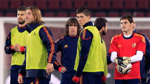 España: Casillas, Sergio Ramos, Piqué, Puyol, Capdevila; Silva, Xabi Alonso, Xavi, Iniesta; Torres y Villa. DT: Vicente del Bosque