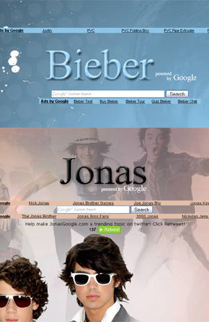 La compañía se deja llevar por la fiebre juvenil y ofrece un regalo para los miles de adolescentes del planeta. Google pone información de las estrellas, pero el buscador no pierde sus funciones y se puede encontrar cualquier cosa que busques.
