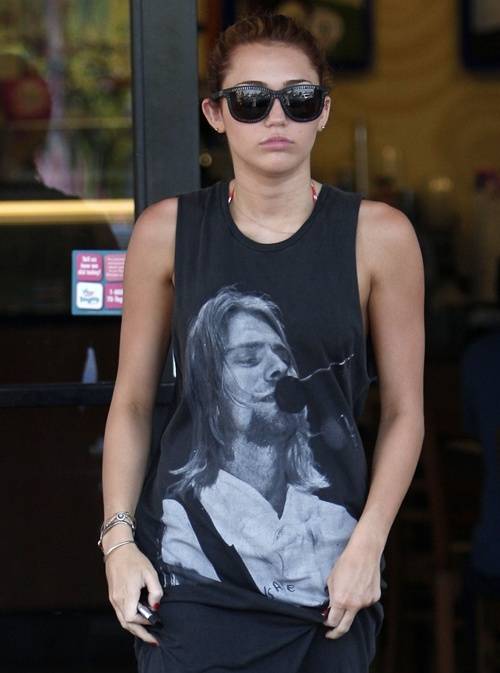 Miley declaró hace unos meses: "Me encanta Nirvana, mis canciones favoritas son Smells Like Teen Spirit, In Bloom y Lithium. Mi hermano Braison tiene una banda cover a Nirvana, asi que a veces canto con ellos. Kurt Cobain es mi amor platónico de todos los tiempos." Cuando Miley lució una remera de Iron Maiden los medios comenzaron a decir que ella no sabía nada sobre esta banda metal, a lo que ella contestó: "Me deben haber visto llevando una remera de Iron Maiden últimamente. Y sé que hay algunas personas que dicen 'Es solo una pose...quiere hacerse la rock star' Ustedes no saben nada. No saben todo de mi vida. No saben si me gusta Iron Maiden o no"