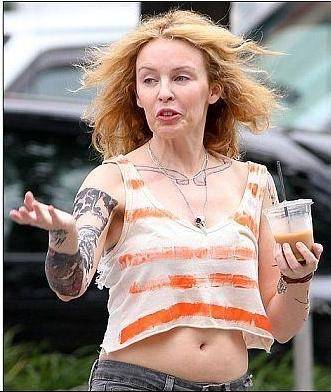 Al parecer, poco queda de la ardiente figura de Kylie Minogue, ya que la cantante fue captada mostrando el cruel paso de los años en su rostro y su voluptuoso cuerpo. Y es que la rubia conmocionó a sus seguidores al lucir un cabello y ropa bastante desaliñada. Ella fue fotografiada por el diario Daily Mail.