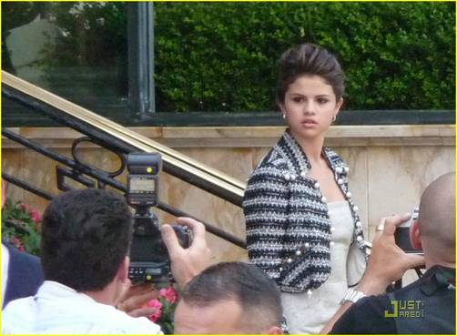 Selena Gómez muestra su lado sofisticado mientras graba escenas más con la estrella Catherine Tate para Monte Carlo en el Hotel de París en Mónaco el jueves por la mañana (01 de julio).