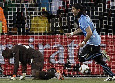 En la serie desde el punto del penal, Muslera se erigió en el héroe al contener los disparos de Jonathan Mensah y Dominic Adiyiah, mientras que su compañero Sebastián Abreu mostró por qué le dicen Loco: picó la bola con clase y frialdad para sellar el pase de Uruguay a semifinales.