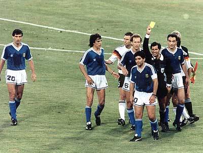 Tan solo 4 años debieron pasar para que la Nationalmannschaft y la Albiceleste se enfrentasen de nuevo en una cita ecuménica del fútbol. El marco fue el Mundial de Italia de 1990 que se desarrolló entre el 8 de junio y 8 de julio de aquel año. Una vez más fue en la final que ambos equipos se encontraron. Esta ocasión, la suerte le fue adversa al combinado del genial Diego Armando Maradona. Alemania ganó por 1 gol contra cero. Cuando todos pensaban que las cosas iban para más y que había que guardar físico para los suplementarios, un ataque alemán es frenado, según el punto de vista del controvertido colegiado mexicano Edgardo Codesal Méndez, dentro el área. Fue el colmo, Codesal, quien para esto ya había expulsado a Pedro Monzón a los 65’, le dio la gran oportunidad a los alemanes. Cosa que no fue desperdiciada.Rudy Voller, el artillero alemán, no erró el tiro y a los 85 minutos selló el score del encuentro, en el que Argentina terminó con 9 hombres, dada la expulsión a 3 minutos del final de Dezotti. En el que quizás haya sido el peor mundial de la historia del fútbol, Alemania ganó la Copa del Mundo, e hizo llorar de impotencia a Maradona.EL DEPORTIVO