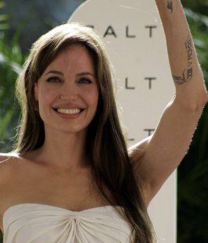 Ahora el antebrazo de Jolie lleva el dibujo de una fecha en números romanos, los medios pudieron dar la noticia gracias a que la actriz saludó a sus fans en la presentación de su película Salt, en Cancún.