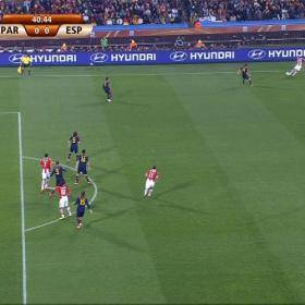 En la jugada del gol, el jugador guaraní recibió dentro del área un centro de Edgar Barreto. La defensa de España falló y Valdez se quedó solo ante Casillas, controló el esférico con el estómago -no con la mano- y marcó un gol que debería haber subido al marcador.