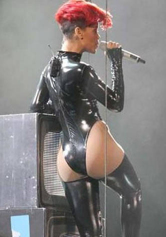 Rihanna mostró parte de sus atributos en un sexy traje de cuero color negro durante un concierto en la ciudad de Vancouver, Canadá.