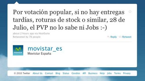 Vía | Twitter de @movistar_es En Xataka Movil | iPhone 4 saldrá a la venta con Movistar el 28 de julio
