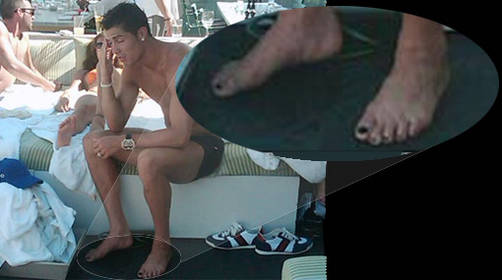 En ella se aprecia un detalle no conocido del jugador, quien al parecer gusta de pintarse las uñas de los pies con colores oscuros.