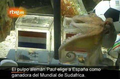 Imágenes del Pulpo Paul cuando vaticina la victoria de España en la final del Mundial Sudáfrica 2010