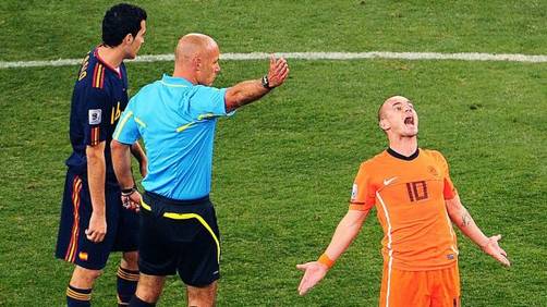 El delantero Wesley Sneijder señaló que el arbitraje de Howard Webb perjudicó a su equipo y permitió el triunfo español en la final del Mundial de Sudáfrica.