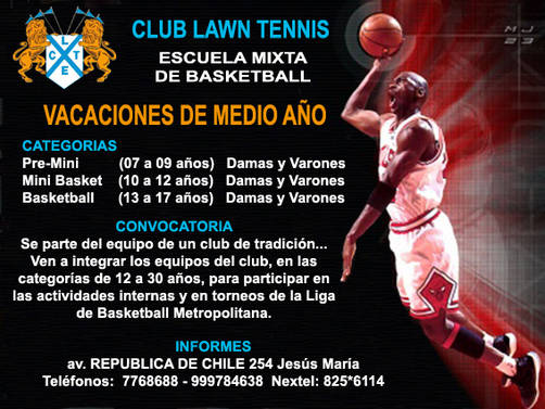 La unidad técnica de basquetball del club los espera durante todo el año para participar en los equipos del club en sus diferentes categorías, en las actividades internas y en la Liga de Básquetball de Lima.