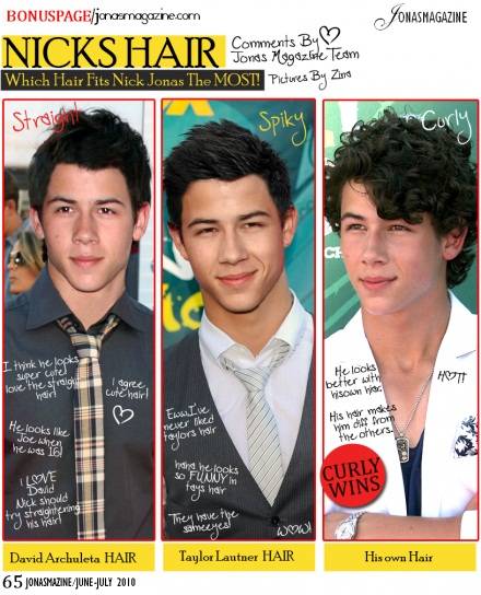 Se trata de una revista hecha por fanáticas en donde encontraremos una página extra que nos muestra 3 cortes de pelo del famoso Nick Jonas. El look ganador es el ondulado... pero ustedes digan... ¿Cuál es du look preferido?