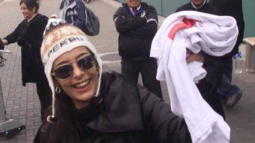 Larissa llegó a Lima un poco más abrigada de lo normal, al parecer por el frío, sin embargo ella lucía un típico chullo peruano.
